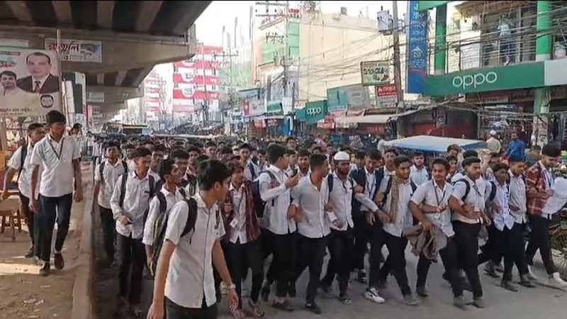 বিক্ষোভ মিছিল শেষে শিক্ষার্থীরা শান্তিপূর্ণভাবে কলেজ চত্বরে সামনে গিয়ে কর্মসূচি শেষ করেন।