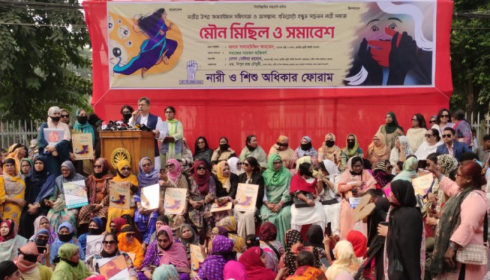 নারী ও শিশু অধিকার ফোরামের উদ্যোগে এই কর্মসূচি হয়। সমাবেশ শেষে মুখে কালো কাপড় বেঁধে শাহবাগ থেকে মৌন মিছিল করে নারীরা, যা কেন্দ্রীয় শহীদ মিনারে গিয়ে শেষ হয়। সমাবেশে নারী ও শিশু অধিকার ফোরামের আহ্বায়ক ও দলের জাতীয় স্থায়ী কমিটির সদস্য বেগম সেলিমা রহমানের সভাপতিত্বে এবং ঢাকা জেলা বিএনপির সাধারণ সম্পাদক, নারী ও শিশু অধিকার ফোরামের সদস্য সচিব অ্যাডভোকেট নিপুণ রায় চৌধুরীর পরিচালনায় আরো বক্তব্য দেন শিরীন সুলতানা, নিলুফার চৌধুরী মনি, সানজিদা ইসলাম তুলি, রেহানা আক্তার শিরীন প্রমুখ।