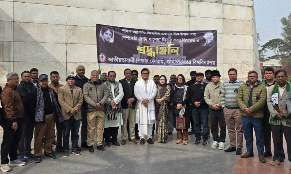 বিএনপি চেয়ারপারসন ও সাবেক প্রধানমন্ত্রী খালেদা জিয়ার সমাধিতে শ্রদ্ধা জানিয়েছে জাহাঙ্গীরনগর বিশ্ববিদ্যালয়ের (জাবি) উপাচার্য অধ্যাপক মোহাম্মদ কামরুল আহসান ও জাতীয়তাবাদী শিক্ষক ফোরামের সদস্যরা।