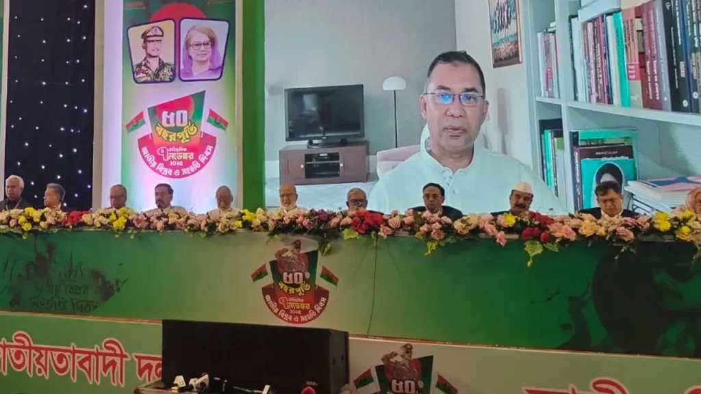 গত কয়েক দিনের পরিস্থিতি প্রসঙ্গে তারেক রহমান বলেন, সর্ব খাতে এই রকম দুরাবস্থা। আমরা দেখছি, নানা শর্ত জুড়ে দিয়ে কিছু রাজনৈতিক দল জাতীয় নির্বাচন অনুষ্ঠানে বাধা সৃষ্টি করতে চাইছে। জাতীয় নির্বাচন অনুষ্ঠান নিয়ে জটিলতা সৃষ্টির অর্থ একদিকে নির্বাচন না করে হয়তো রাষ্ট্রের খবরদারির সুযোগ গ্রহণ করা, অপরদিকে রাজনৈতিকভাবে যদি বলতে হয়, পরিষ্কারভাবে পতিত পরাজিত পলাতক স্বৈরাচারের পুনর্বাসনের পথকে সুগম করে দেওয়া। পলাতক স্বৈরাচারীর সহযোগিতায় গত কয়েক দিনে আমরা দেখছি, খোদ রাজধানী ঢাকায় যেভাবে আগুন-সন্ত্রাস চালিয়েছে, ফ্যাসিবাদবিরোধী শক্তির করণীয় সম্পর্কে এটা একটা সতর্কবার্তা হতে পারে।