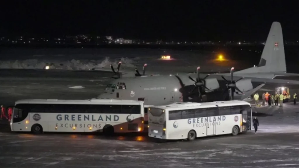 এর আগে বুধবার রাতে ডেনিশ বিমান বাহিনীর একটি বিমান নুক বিমানবন্দরে অবতরণ করে। সেখানে সামরিক পোশাক পরা একাধিক সেনা সদস্যকে নামতে দেখা যায়।