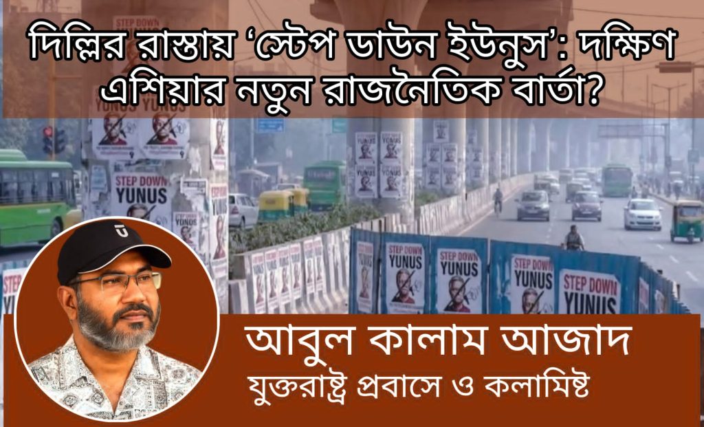 এই কারণেই, দিল্লির রাস্তায় “Step Down Younus” লেখা পোস্টার কোনো বিচ্ছিন্ন ঘটনা নয়—এটি দক্ষিণ এশিয়ার পরিবর্তনশীল ক্ষমতারধারার এক নিঃশব্দ প্রতিফলন।