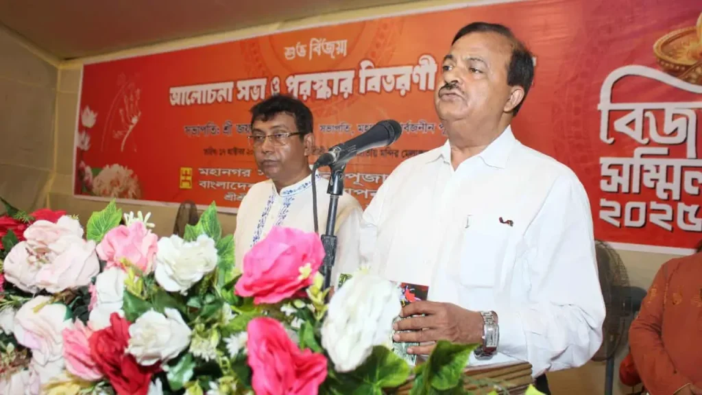 শুক্রবার (১৭ অক্টোবর) বিকালে রাজধানীর শ্রীশ্রী ঢাকেশ্বরী জাতীয় মন্দির মেলাঙ্গনে শারদীয় দুর্গোৎসব-পরবর্তী বিজয়া সম্মিলন ও পুরস্কার বিতরণী অনুষ্ঠানে নেতারা এসব কথা বলেন।