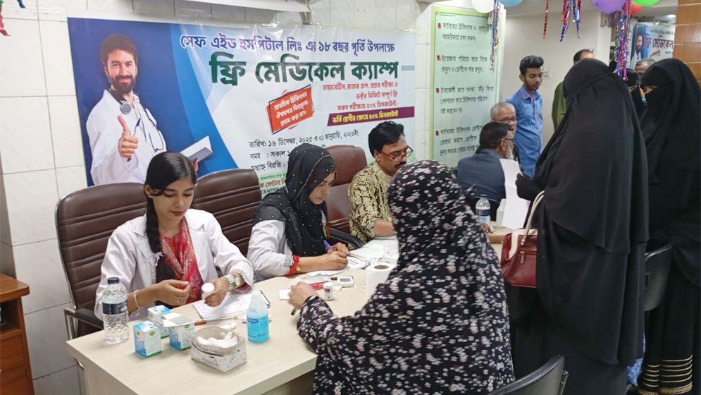মহান বিজয় দিবস উপলক্ষে রাজধানী ঢাকার শনিআখড়ায় সেফ এইড জেনারেল হাসপাতাল অ্যান্ড ডায়াগনস্টিক সেন্টারের উদ্যোগে দিনব্যাপী ফ্রি মেডিকেল ক্যাম্প ও ওষুধ বিতরণ করা হয়েছে।
