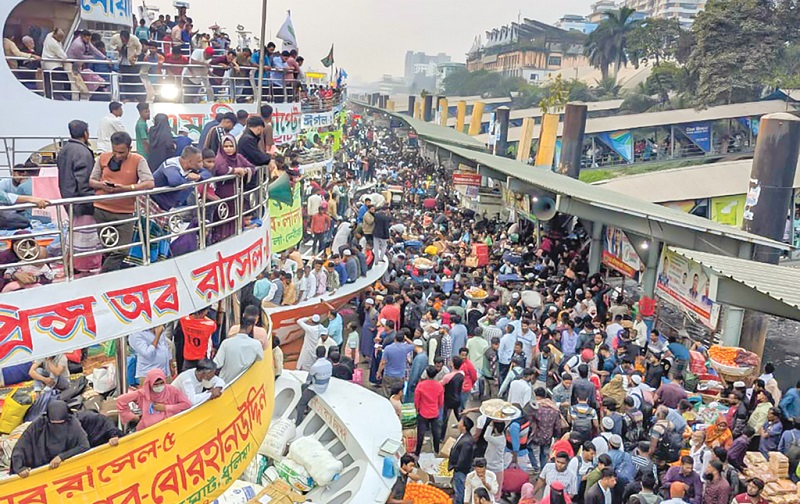 নাম প্রকাশে অনিচ্ছুক তাসরিফ-১ লঞ্চের এক কর্মচারী বলেন, আগে থেকেই লঞ্চ বুকিং করে রাখা হয়েছে। এনআইডি দেখালে ভাড়া লাগছে না। বিআইডব্লিউটিএ সূত্র জানায়, গতকাল সকাল থেকে দুপুর পর্যন্ত সদরঘাট থেকে ৩৩টি লঞ্চ ছেড়েছে। দিন শেষে এই সংখ্যা ৬৫টি হতে পারে।