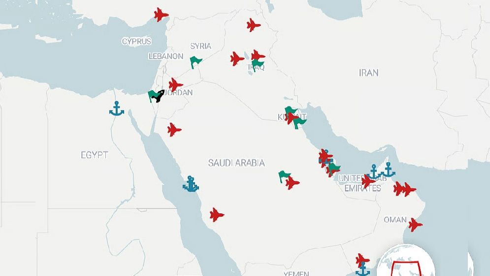 মধ্যপ্রাচ্যের কোথায় কয়টি সামরিক ঘাঁটি আছে যুক্তরাষ্ট্রের?