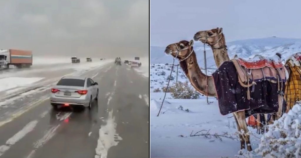 স্থানীয় আবহাওয়া বিভাগ জানিয়েছে, জর্ডান সীমান্তবর্তী এই অঞ্চলগুলোতে তাপমাত্রা হিমাঙ্কের নিচে নেমে গেছে। মূলত পুরো মধ্যপ্রাচ্যজুড়ে একটি গভীর নিম্নচাপ সৃষ্টি হওয়ায় এই দুর্লভ আবহাওয়া পরিস্থিতির তৈরি হয়েছে। তুষারপাতের পাশাপাশি উত্তর সৌদি আরব এবং রিয়াদের কিছু অংশে রেকর্ড পরিমাণ বৃষ্টিপাত ও বৈরী আবহাওয়া লক্ষ্য করা গেছে।