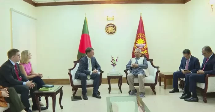 যুক্তরাষ্ট্রের সঙ্গে দ্বিপাক্ষিক সম্পর্ক- বিশেষ করে বাণিজ্য, বিনিয়োগ, জ্বালানি ও উন্নয়ন সহযোগিতার সম্পর্ক আরও গভীর করার বিষয়ে বাংলাদেশ দৃঢ় প্রতিজ্ঞ বলে জানিয়েছেন প্রধান উপদেষ্টা অধ্যাপক ড. মুহাম্মদ ইউনূস। আজ (সোমবার, ১৫ সেপ্টেম্বর) প্রধান উপদেষ্টার কার্যালয়ে যুক্তরাষ্ট্রের অ্যাসিস্ট্যান্ট ট্রেড রিপ্রেজেন্টেটিভ ব্রেন্ডান লিঞ্চের সঙ্গে বৈঠকে তিনি এ কথা বলেন।
