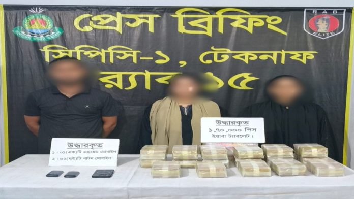 কক্সবাজারের টেকনাফের সদর ইউপির ছোট হাবিব পাড়া এলাকায় অভিযান চালিয়ে এক লাখ ৭০ হাজার পিস ইয়াবা ট্যাবলেট উদ্ধারসহ ৩ জন নারী মাদক কারবারিকে আটক করেছে কক্সবাজার র্যাব-১৫।