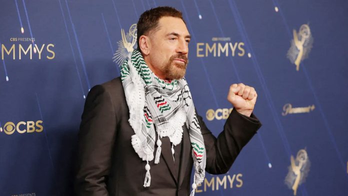 ফিলিস্তিনের প্রতি সংহতি প্রকাশে অ্যাওয়ার্ড ফাংশনে কেফায়া জড়িয়ে হাজির হলেন হলিউড অভিনেতা হাভিয়ের বার্দেম।