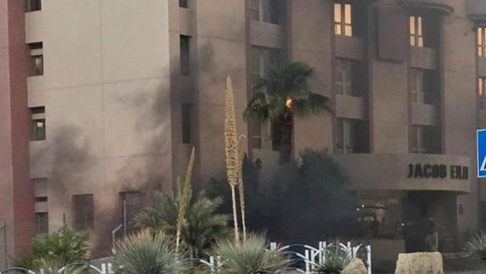 ইসরায়েলের ইলাত শহরের একটি হোটেলের সামনে ড্রোন হামলার ঘটনা ঘটেছে। বৃহস্পতিবার (১৮ সেপ্টেম্বর) স্থানীয় সময় বিকেলে ড্রোনটি হোটেলের প্রবেশদ্বারে এসে পড়ে। ঘটনাস্থলে দ্রুত পৌঁছে যায় ইসরায়েলি নিরাপত্তা বাহিনী ও স্বাস্থ্যকর্মীরা। খবর, টাইমস অব ইসরায়েলের।