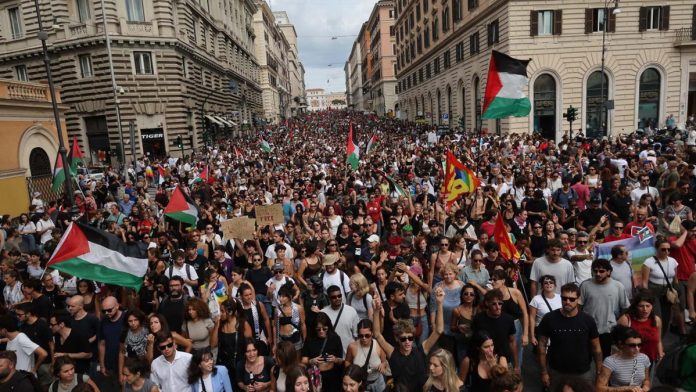 গাজায় ইসরায়েলি আগ্রাসনের প্রতিবাদে ইতালিতে বিক্ষোভ