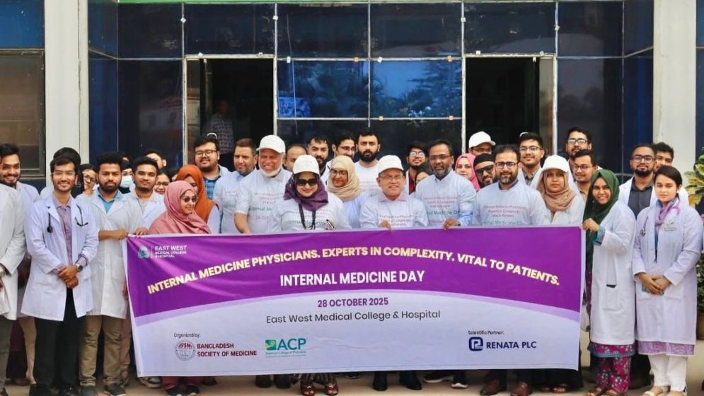 আন্তর্জাতিক ইন্টারনাল মেডিসিন দিবস উপলক্ষে রাজধানীতে র‌্যালী করেছে চিকিৎসকরা। মঙ্গলবার উত্তরার ইস্ট ওয়েস্ট মেডিকেল কলেজ হাসপাতালের ক্যাম্পাসে এই র‌্যালী হয়। এর আগে বাংলাদেশ সোসাইটি অফ মেডিসিন (বিএসএম) এবং এমেরিকান কলেজ অফ ফিজিশিয়ানস এর তত্ত্বাবধানে হাসপাতালে একটি সভা অনুষ্ঠিত হয়।