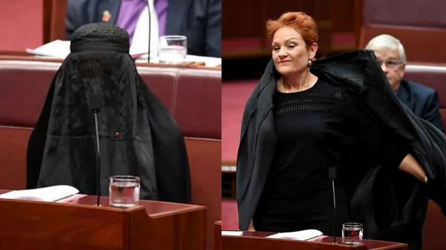 আন্তর্জাতিক ডেস্ক: অস্ট্রেলিয়ার সিনেটে আবারও বিতর্কের জন্ম দিলেন ওয়ান নেশন পার্টির সিনেটর পলিন হ্যানসন। জনসমক্ষে বোরকা নিষিদ্ধ করার প্রস্তাব উত্থাপনের অনুমতি না পাওয়ার পর তিনি বোরকা পরে সিনেট চেম্বারে প্রবেশ