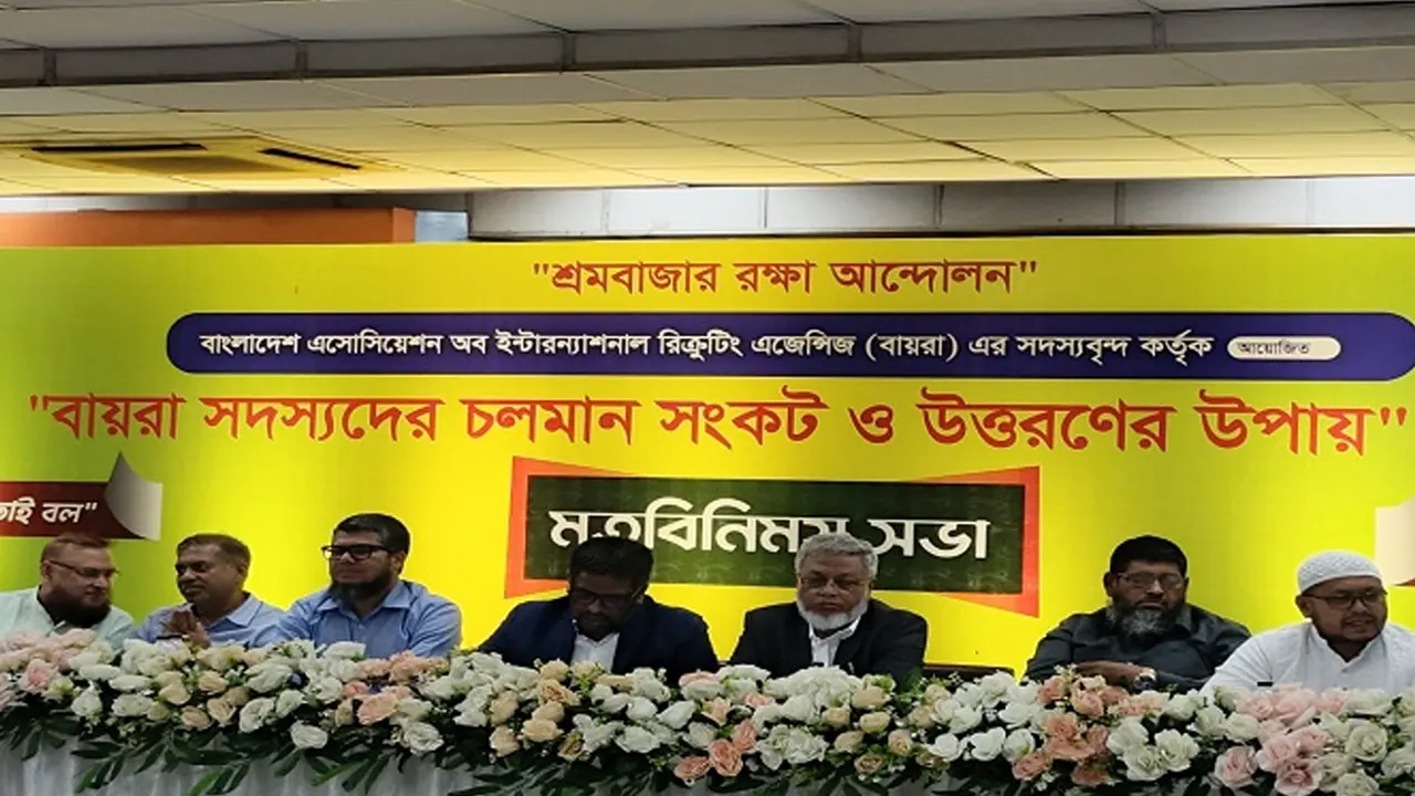 বাতিল হওয়া ৪৫টি রিক্রুটিং এজেন্সির লাইসেন্স বিনা শর্তে বহালসহ ৮ দফা দাবি পূরণে আগামী রোববার (৯ নভেম্বর) পর্যন্ত সরকারকে সময় বেঁধে দিয়েছে বাংলাদেশ অ্যাসোসিয়েশন অব ইন্টারন্যাশনাল রিক্রুটিং এজেন্সির (বায়রার) একাংশের