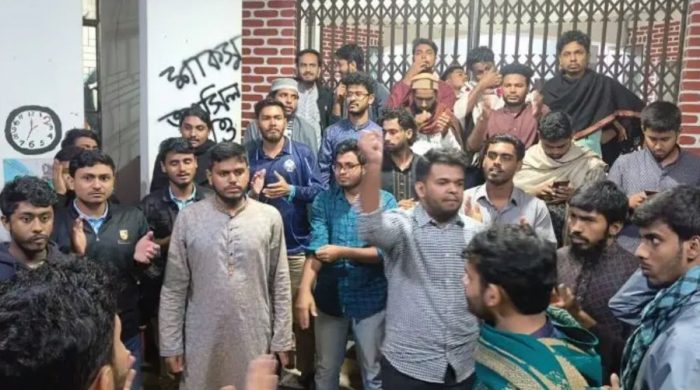 সিলেটের শাহজালাল বিজ্ঞান ও প্রযুক্তি বিশ্ববিদ্যালয়ের কেন্দ্রীয় ছাত্র সংসদ (শাকসু) নির্বাচনের তারিখ ঘোষণা করেছেন বিশ্ববিদ্যালয়ের উপাচার্য এ এম সরওয়ারউদ্দিন চৌধুরী। তা প্রত্যাখ্যান করে প্রশাসনিক ভবনের ফটক অবরোধ করে শিক্ষার্থীরা বিক্ষোভ