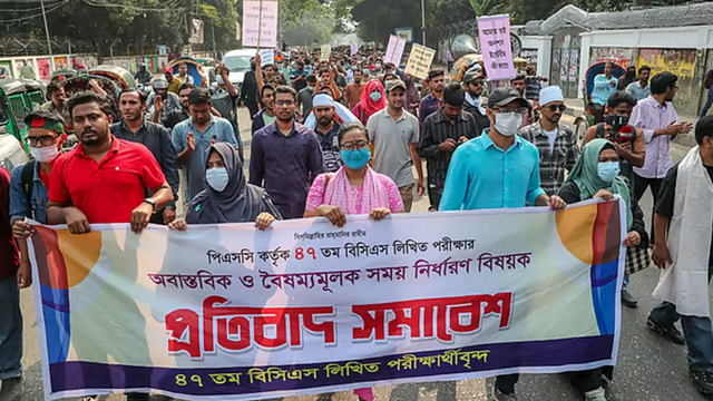নিউজ ডেস্ক: ৪৭তম বিসিএসের লিখিত পরীক্ষার তারিখ পেছানোর দাবিতে আবারও রাষ্ট্রীয় অতিথি ভবন যমুনার অভিমুখে মিছিলের ডাক দিয়েছেন আন্দোলরত শিক্ষার্থীরা। এ সময় শহীদ মিনার এলাকা থেকে আন্দোলনকারীরা যমুনা অভিমুখে মিছিল