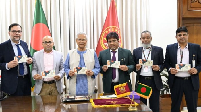 মহান বিজয় দিবস উপলক্ষে একটি স্মারক ডাকটিকিট, উদ্বোধনী খাম ও সিলমোহর অবমুক্ত করেন প্রধান উপদেষ্টা ড. মুহাম্মদ ইউনূস। সোমবার (১৫ ডিসেম্বর) বিকালে রাষ্ট্রীয় অতিথি ভবন যমুনায় তিনি এগুলো অবমুক্ত করেন।