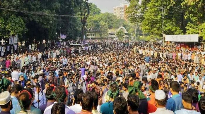ঢাকা বিশ্ববিদ্যালয়ের রাজু ভাস্কর্যের সামনে বৃহস্পতিবার (১৩ নভেম্বর) সকালে ছাত্রশিবিরের সমাবেশে শিক্ষার্থীরা ‘আলু না গণভোট, গণভোট গণভোট’ স্লোগান উত্তাল করে তোলেন। মিছিল পরবর্তী সমাবেশের একপর্যায়ে বক্তারা বলেন, তারেক রহমান বলেছেন