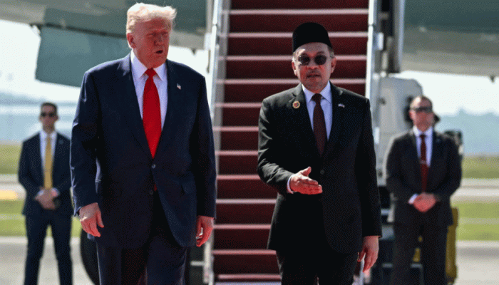 দীর্ঘদিনের সীমান্ত বিরোধ মীমাংসার লক্ষ্যে থাইল্যান্ড ও কাম্বোডিয়ার মধ্যে একটি ‘শান্তিচুক্তি’ স্বাক্ষর অনুষ্ঠানে উপস্থিত থাকতে মালয়েশিয়ার রাজধানী কুয়ালালামপুরে পৌঁছেছেন যুক্তরাষ্ট্রের প্রেসিডেন্ট ডোনাল্ড ট্রাম্প। মালয়েশিয়ার প্রধানমন্ত্রী আনোয়ার ইব্রাহিমের উপস্থিতিতে আজ ২৬