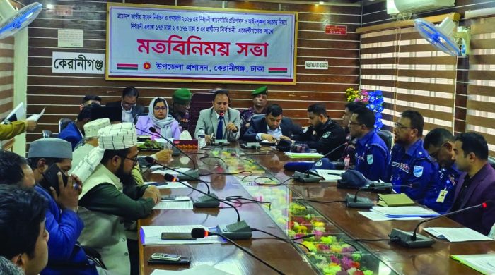 সুষ্ঠু, সুন্দর, অবাধ, নিরপেক্ষ নির্বাচন অনুষ্ঠানের বিষয়ে প্রত্যয় নিয়ে আসন্ন ত্রয়োদশ জাতীয় সংসদ নির্বাচনকে সামনে রেখে কেরানীগঞ্জে নির্বাচনী আচরণবিধি প্রতিপালন নিশ্চিত করতে প্রার্থীদের নির্বাচনী এজেন্টদের সঙ্গে জরুরি সভা অনুষ্ঠিত হয়েছে।