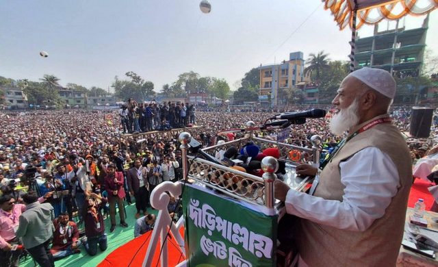 নিউজ ডেস্ক: কুমিল্লার চৌদ্দগ্রামে বিএনপি চেয়ারম্যান তারেক রহমানের নির্বাচনী সমাবেশে জয় বাংলা স্লোগান দিয়েছেন আবির আব্দুল্লাহ চৌধুরী নামে এক ছাত্রদল নেতা। এই স্লোগানের ৯ সেকেন্ডের একটি ভিডিও ক্লিপ সামাজিক যোগাযোগমাধ্যমে